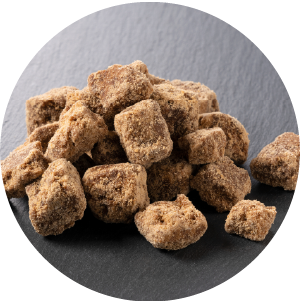 コクとまろやかな甘さが特徴の、サトウキビ100%の沖縄県産黒糖。ビタミンミネラルの他にも、腸内環境を整えるオリゴ糖や食物繊維、排出効果の高いカリウムが豊富に含まれている。