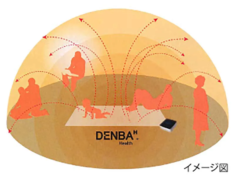 本体とプレートを繋げて、セットするだけで使用可能。プレート一枚で直径1mのDENBA空間が形成されます。