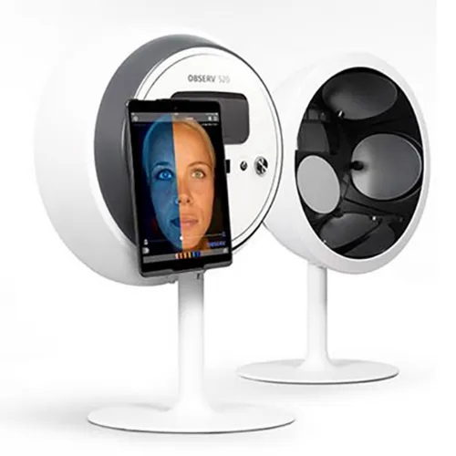 モニターが一体型の自動肌解析マシン。最先端フェイスキャプチャー、PL最適化技術、グラフィックエイジング処理技術とドイツの高度な光パス処理技術を組み合わせることで、より立体的でリアルなポートレート表現を実現しています。3000万人の豊富な肌データーを元に顔の状態を正確に識別するため、高速かつ効率的です。