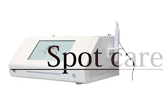 低周波の安全性を保ちつつ今までのシミケアマシンでは反応の薄かった薄いシミにも対応し、痛みが弱いのにシミへの反応が早く効率的に施術ができる設計となりました。